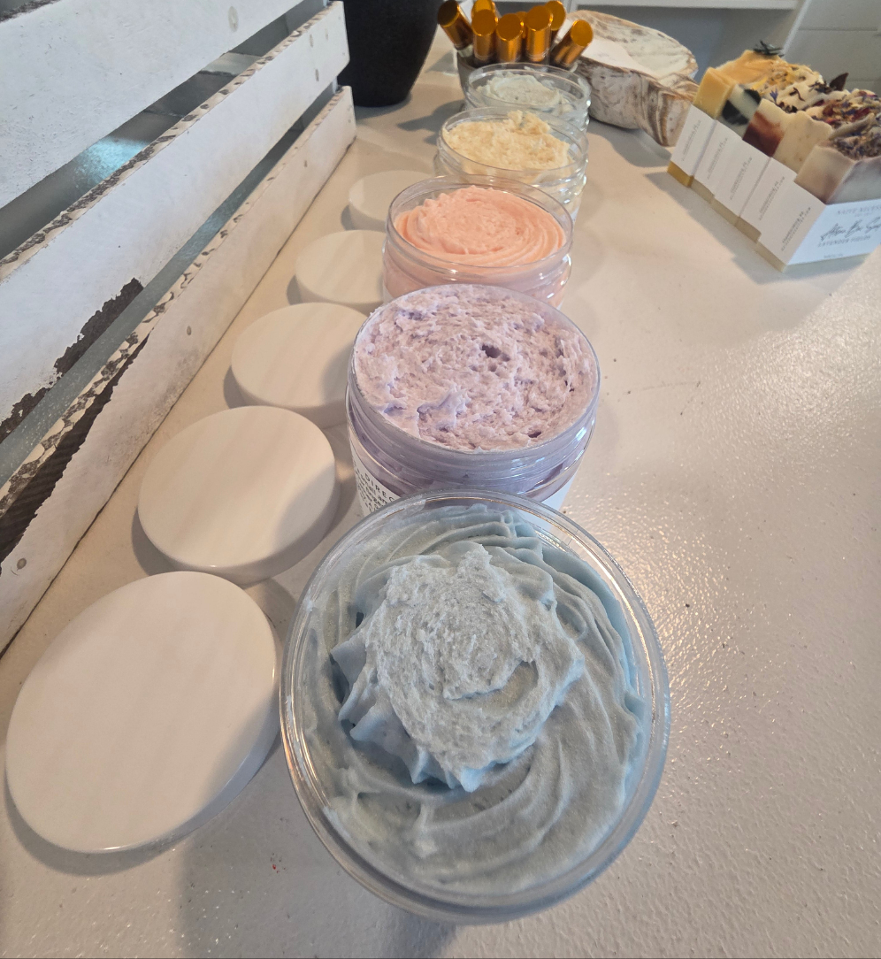 Turn your everyday shower into a luxurious escape with our Luxury Whipped Soap, a creamy, cloud-like cleanser that leaves skin soft, smooth, and beautifully scented. Each jar is hand-whipped in small batches, blending skin-loving ingredients with enchanting seasonal fragrances.