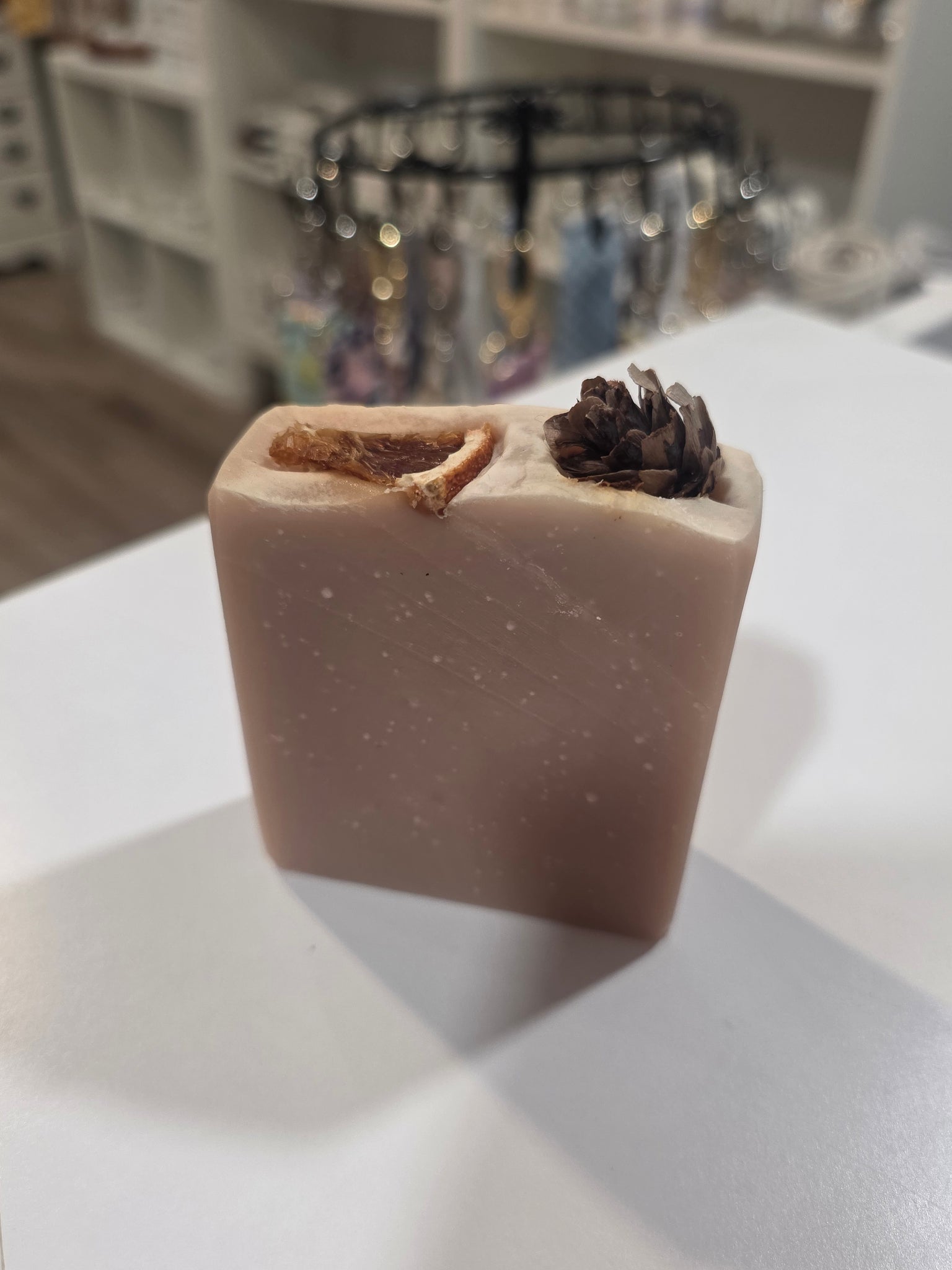 INGREDIENTS: Saponified Olive Oil, Sustainable Palm Oil, Coconut Oil, Shea Butter, Cocoa Butter, Castor Oil, Rice Bran Oil, Essential Oil, Fruit & Floral Extract, Dried Botanicals